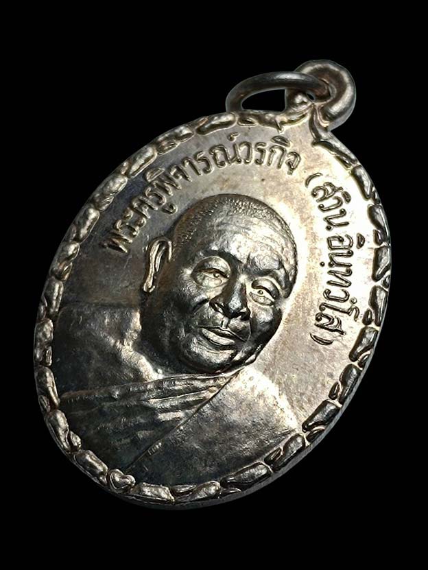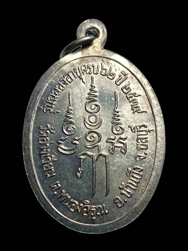 พระครูพิจารณ์วรกิจ (สวิน อินฺทวํโส) วัดอ่างเวียน ต.หนองอิรุณ อ.บ้านบึง จ.ชลบุรี ฉลองอายุ 62 ปี หลังยันต์ เนื้อเงิน (น้ำหนักเหรียญ 9.0 กรัม) ปี พ.ศ.2539