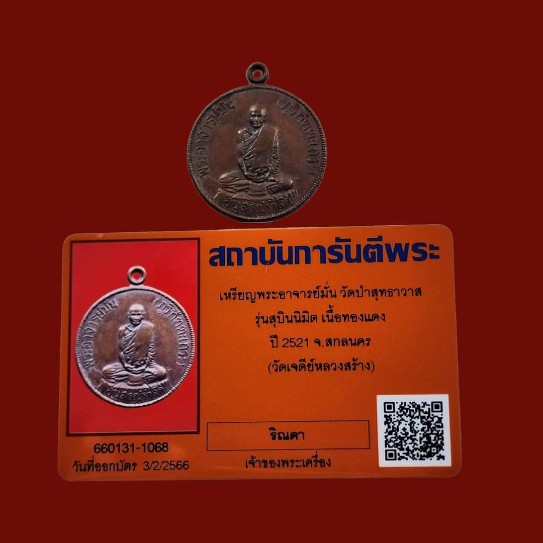 หลวงปู่แหวนปลุกเสก พิธีใหญ่ !!! ... เหรียญสุบินนิมิตเนื้อทองแดง หลวงปู่มั่น ภูริทัตโต วัดป่าสุทธาวาส จ.สกลนคร ปี พศ.2521 ... พร้อมบัตรรับรอง