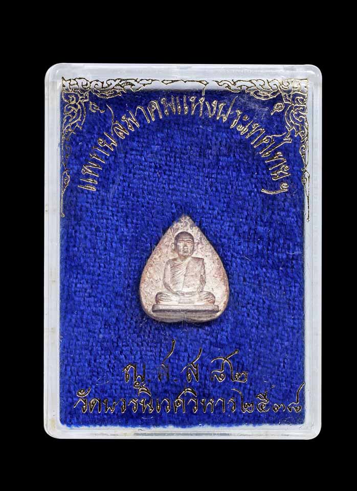 เหรียญหล่อใบโพธิ์เนื้อเงิน สมเด็จพระญาณสังวร วัดบวรนิเวศ ปี 2538 รุ่น ญสส.82 กล่องเดิม |