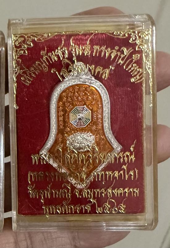 เหรียญกันชง พิมพ์ใหญ่ ปี 65 ทรงจำปี หลวงพ่ออิฏฐ์ วัดจุฬามณี จังหวัดสมุทรสงคราม เนื้อเงิน ลงยาส้ม สวยเดิมๆ