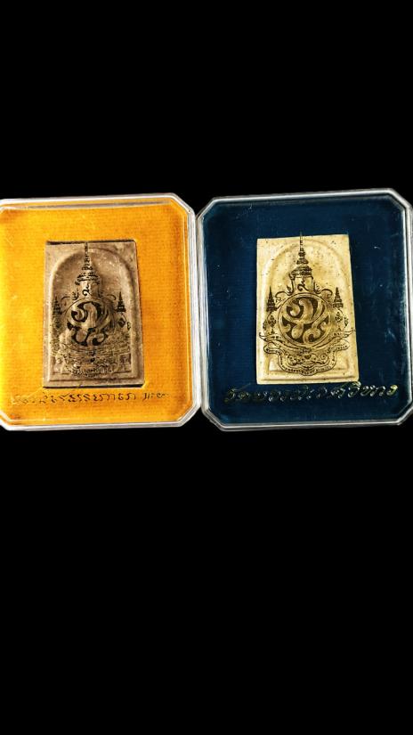 **100.** (2 องค์) พระสมเด็จพระพุทธชินสีห์ + พระสมเด็จเนื้อผง หลังภปร. วัดบวรนิเวศวิหาร หลังตราสัญลักษณ์พระราชพิธีมหามงคลเฉลิมพระชนมพรรษา 7 รอบ ในหลวงรัชกาลที่ 9 สร้างปี 2542 |