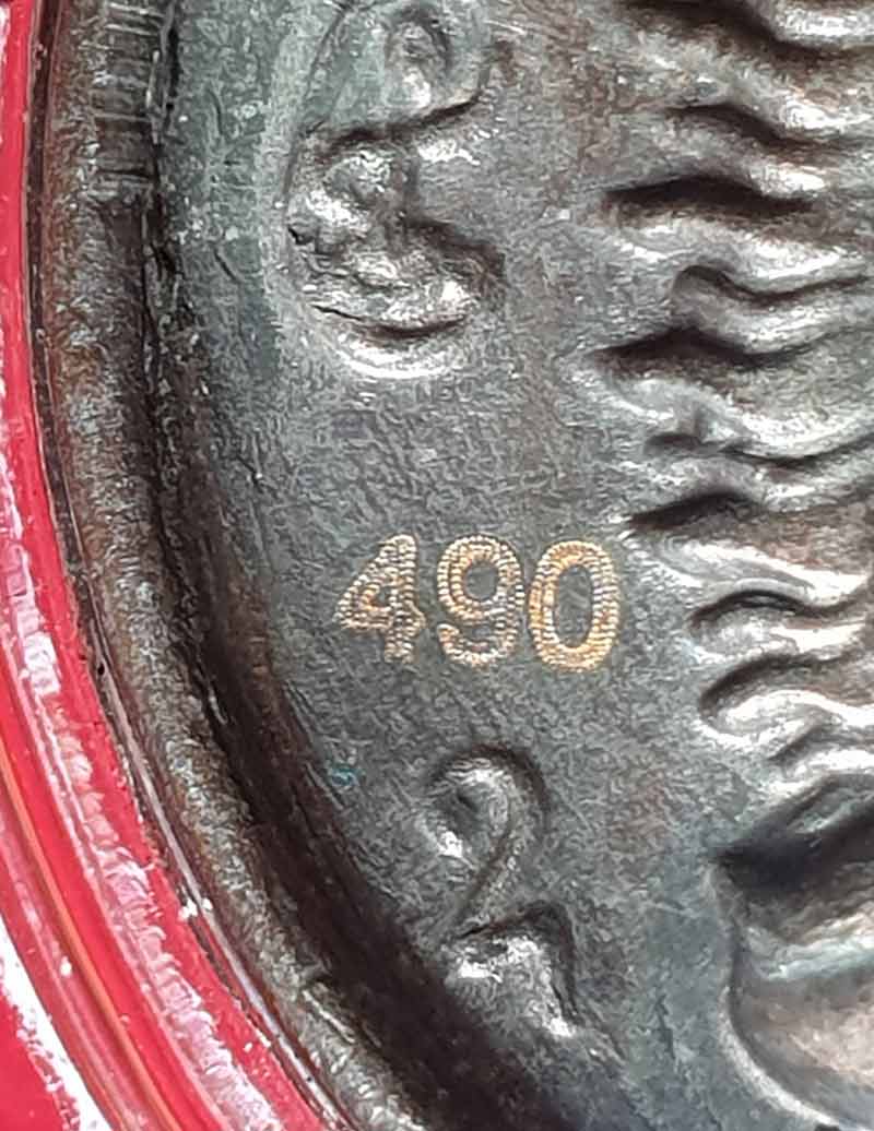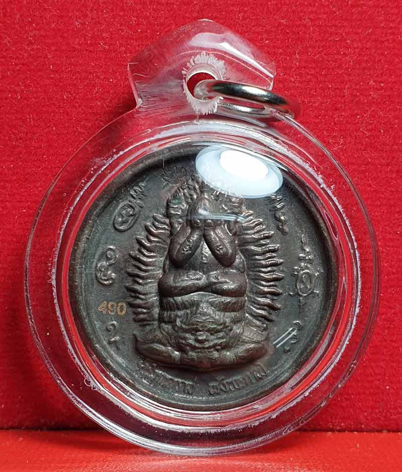 ด้านหลังเป็นพญาครุฑและพระราหู 8 ทิศ พิธีศักดิ์สิทธิ์...พิธียิ่งใหญ่ เนื้อนวะโลหะ ขนาด 3 ซ.ม. เลข 490