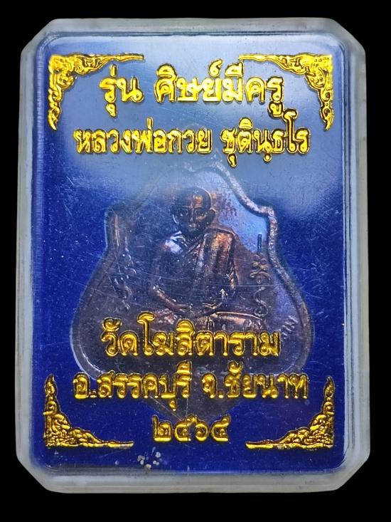 เหรียญหลวงพ่อกวยหลังยันต์ เนื้อทองแดงรมดำ รุ่นศิษย์มีครู ปี 2565 พร้อมกล่อง