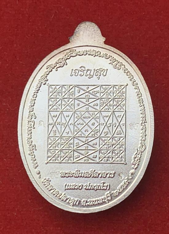 เหรียญเจริญสุข หลวงพ่อแสวง วัดลาดปลาดุก จ.นนทบุรี เนื้อเงินลงยาสีน้ำเงิน หมายเลข ๘