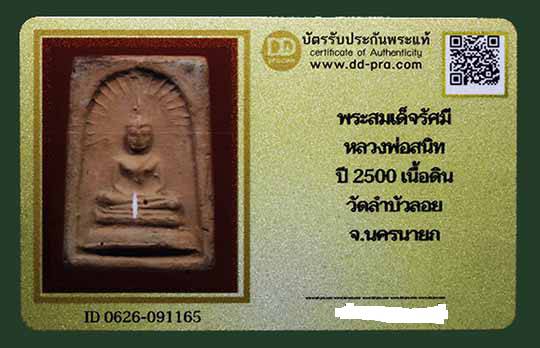 พระสมเด็จ รัศมีแหวกม่านเปิดโลก ปี 2500 หลวงพ่อสนิท วัดลำบัวลอย จังหวัดนครนายก ออกบัตรรับรอง จากเวปดีดีพระ |