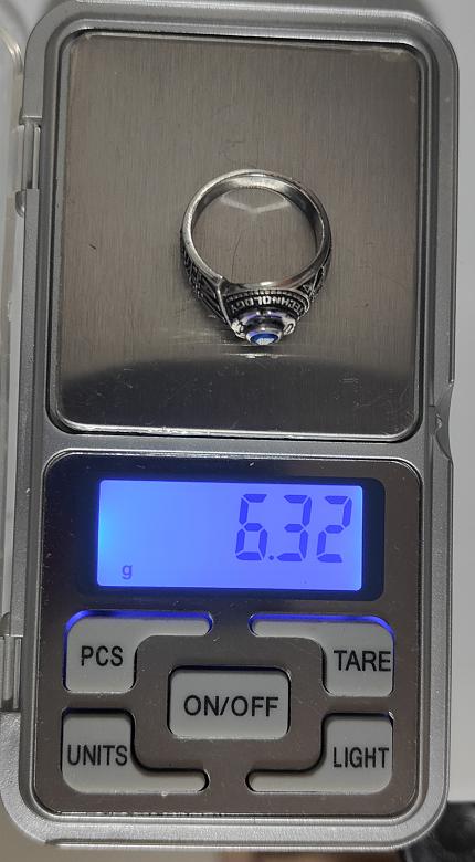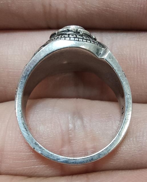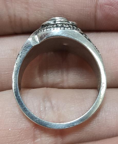 วัดใจ 100 แหวนรุ่นชั่งกล เนื้อเงิน ฝังพลอยสีน้ำเงิน น้ำหนัก 6.32 กรัม ไม่ทราบที่ เส้นผ่าศูนย์กลาง 1.7-1.8 ซม. เคาะเดียวแดง