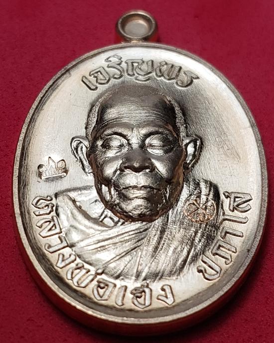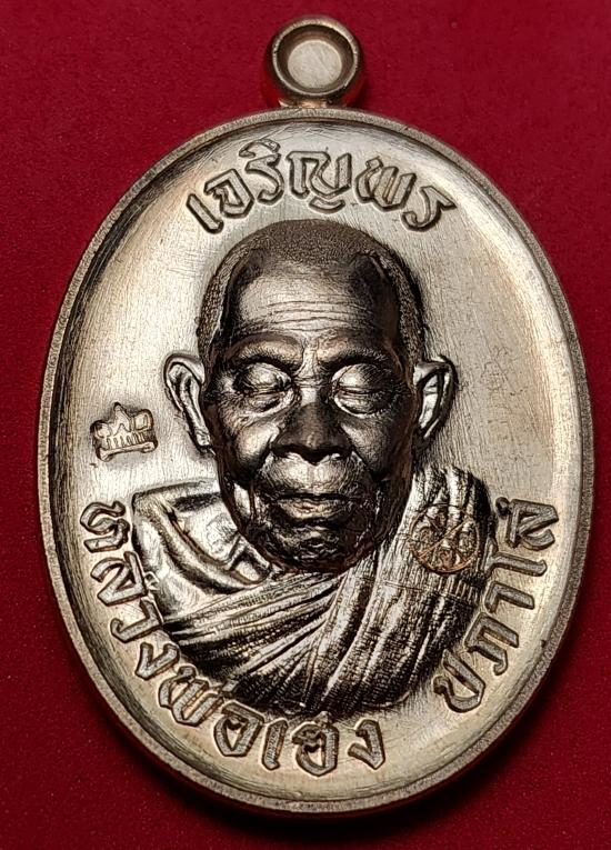หลวงปู่เฮง ปภาโส รุ่นเจริญพร 8 รอบ เนื้อกะไหล่นาค ตอกศาลา หลังยันต์เต็ม ตอกเลข 5251 เคาะเดียว |