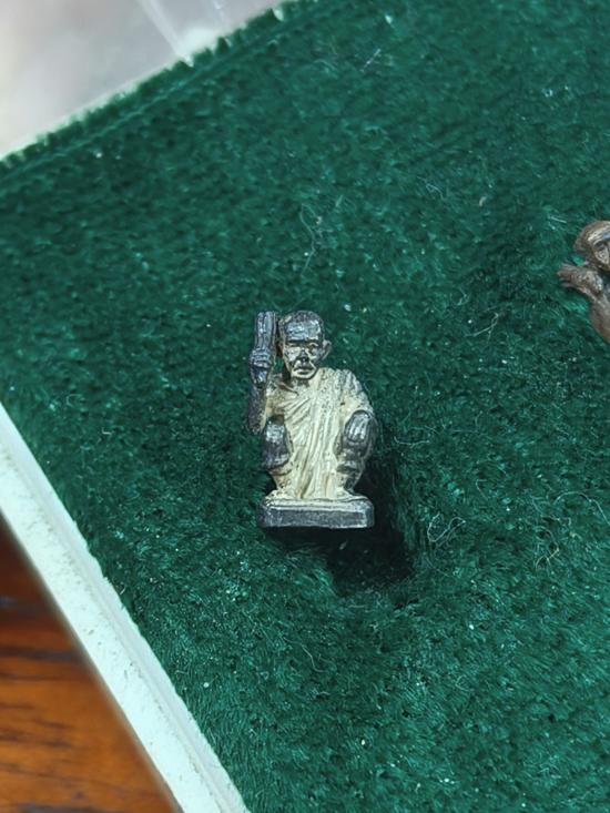 เคาะแรกแดง+ รูปหล่อจิ๋ว ถือไม้เคาะหัว รุ่น มั่งมีทวีคูณ ปี๒๕๓๙ เนื้อเงิน เนื้อนวะ