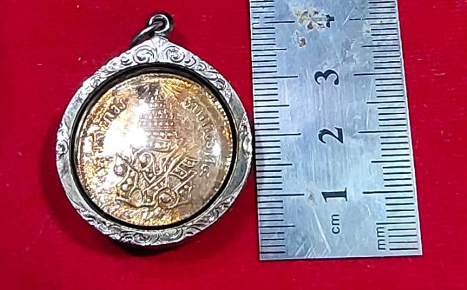 วัดใจ 490.เหรียญโสฬส ทองแดงตรา จ.ป.ร. - ช่อชัยพฤกษ์ จ.ศ.1236 เลี่ยมเงิน |
