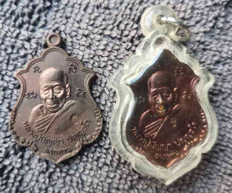 2 องค์ เหรียญแจกทาน ลป ปัญญา วัดหนองผักหนาม ชลบุรี เนื้อทองแดง แถมนางกวัก