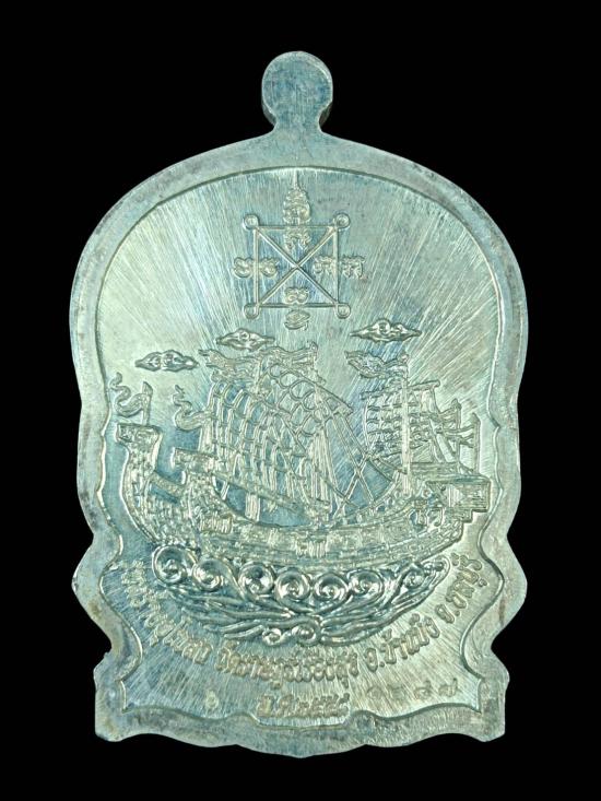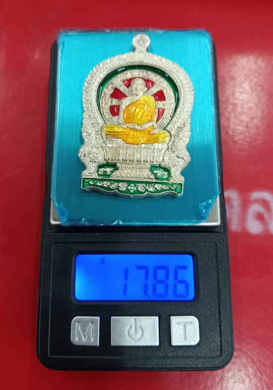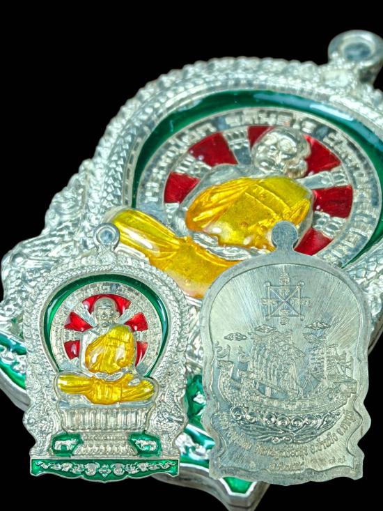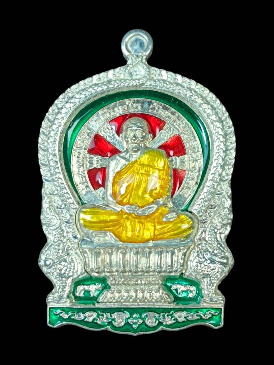 เหรียญนั่งพานหลวงปู่ฮก ไตรมาสปี 2558 เนื้อเงินปะเงินลงยา ตอกโค๊ต ฮ หมายเลข 1287