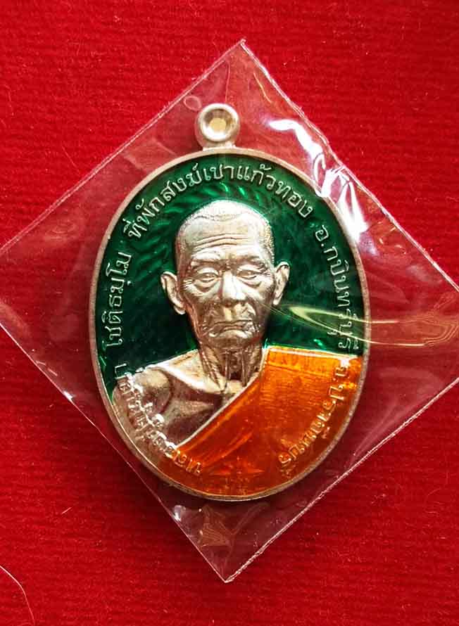 เหรียญชนะจน บูรพาไร้พ่าย เนื้อเงินลงยา ลงยาเขียว จีวรเหลือง หลวงปู่บุญมา สำนักสงฆ์เขาแก้วทอง ตำบลเขาไม้แก้ว อำเภอกบินทร์บุรี จังหวัดปราจีนบุรีno.99 ปี 2562 สร้าง 99 องค์