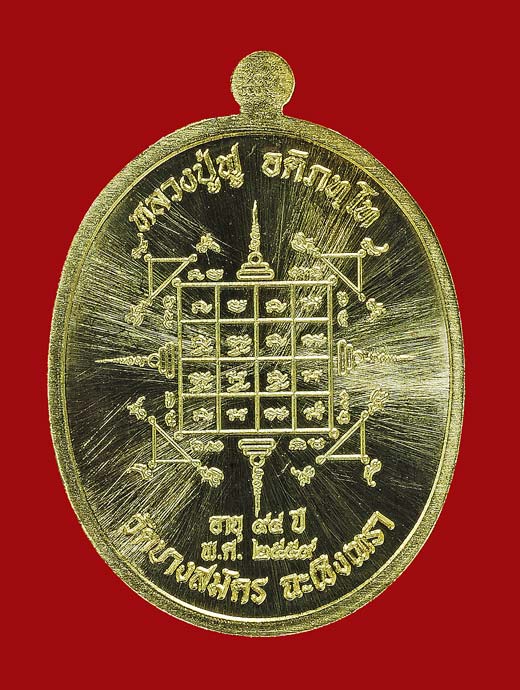 เหรียญหมายเลขมงคล 333 รุ่น "อายุยืน" หลวงพ่อฟู วัดบางสมัคร อ.บางปะกง จ.ฉะเชิงเทรา พ.ศ.2559 เนื้อทองระฆัง หลังยันต์ โค๊ด "รวย" |
