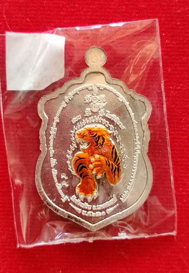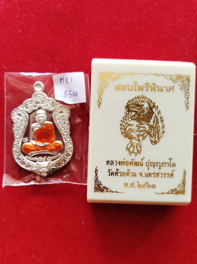 เหรียญพิมพ์เสมา สยบไพรีพินาศ หลวงพ่อพัฒน์ วัดห้วยด้วน เนื้อเงิน ลงยาจีวรเหลือง หลังลงยาเสือ no.44 (เลขสวย) กล่องเดิม |