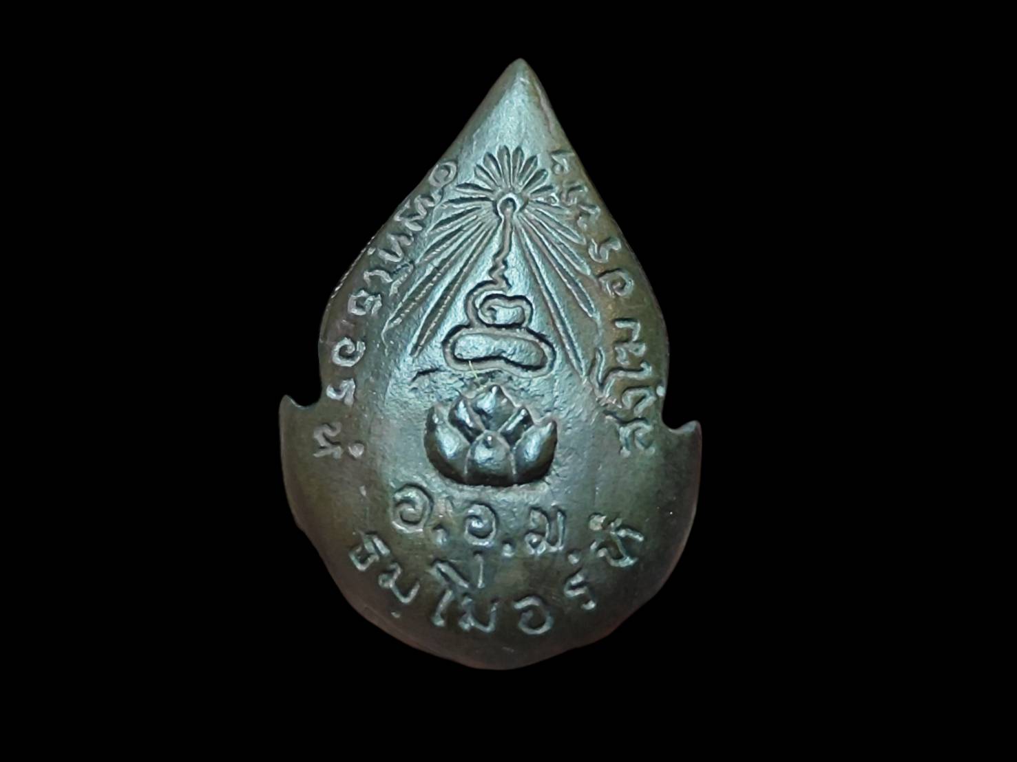 เหรียญหล่อกรีบบัว บรรจุเกศา หลวงปู่แหวน ปี 16 เนื้อนวะโลหะ