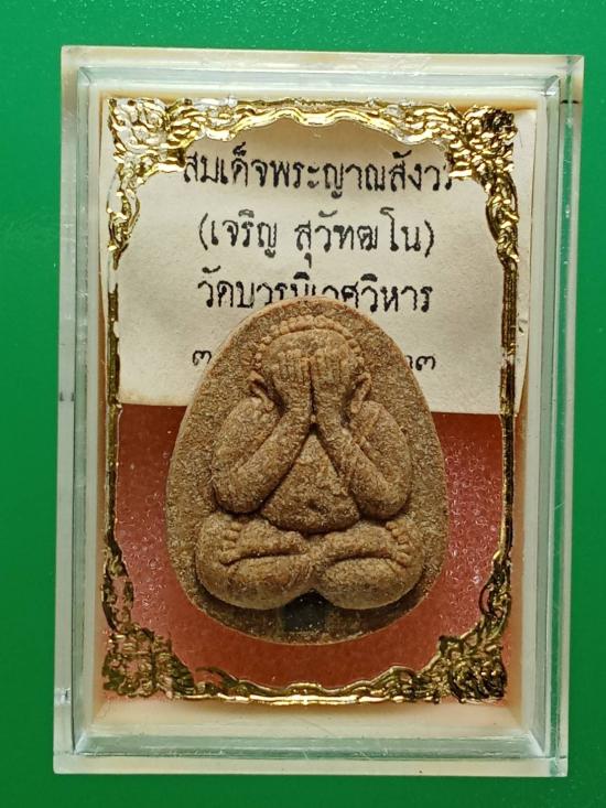 เคาะเดียว มีกล่องเดิมพร้อมใบฝอย พระปิดตายันต์ดวงเล็ก เนื้อผงเกสรผสมว่าน ๑๐๘ ชนิด สอดตะกรุดเงิน (ไม่มีพระเกศา) สมเด็จพระญาณสังวร(เจริญ สุวัฑฒโน ปธ.๙) วัดบวรนิเวศวิหาร ๒-๓ ตุลาคม ๒๕๒๓ |