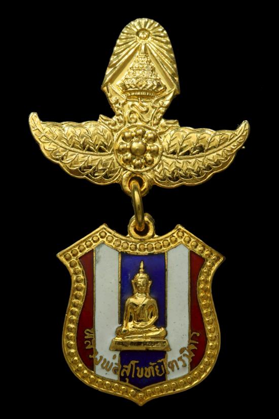 เหรียญอาร์มลงยาธงชาติ มีเข็มกลัด หลวงพ่อทองคำ สุโขทัยไตรมิตร วัดไตรมิตร จ.กรุงเทพฯ