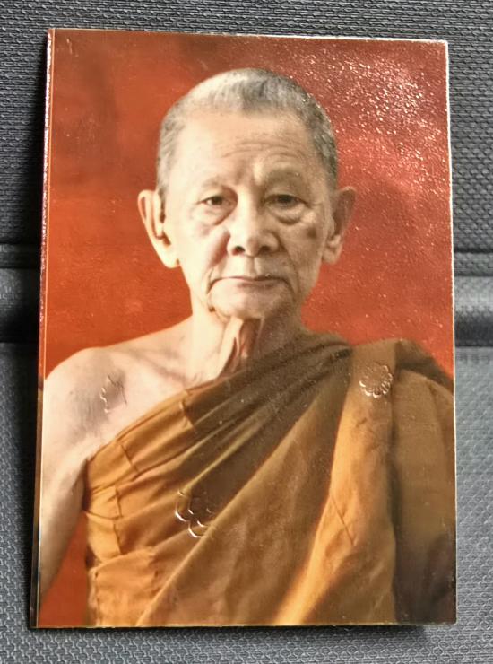 รูปถ่ายหลวงปู่(องค์กรรมการ สร้าง 99 องค์) ตอกโค๊ดบนรูป 3 โค๊ด ตอกโค๊ดใบโพธิ์รอบ
