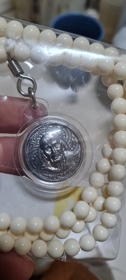 เหรียญอายุวัฒนมงคล 80 ปี เนื้อตะกั่ว(มีค่าดั่งทองคำ)หลวงตาม้า วัดถ้ำเมืองนะ พร้อมรอยจารหลวงตาม้า เลี่ยมจากวัดพร้อมประคำ