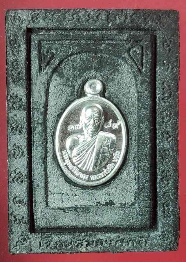 4. รูปเหมือนเนื้อว่านผสมไม้เทพธาโรหลังรูปถ่ายฉากเขียว ตอกโค้ด หมายเลขกำกับ จัดสร้าง 99 องค์