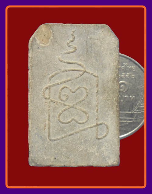 ด้านหลังมียันต์คาถาอักขระขอม อ่านว่า "ธม" อยู่ในระหว่างยันต์ นะอุณาโลม