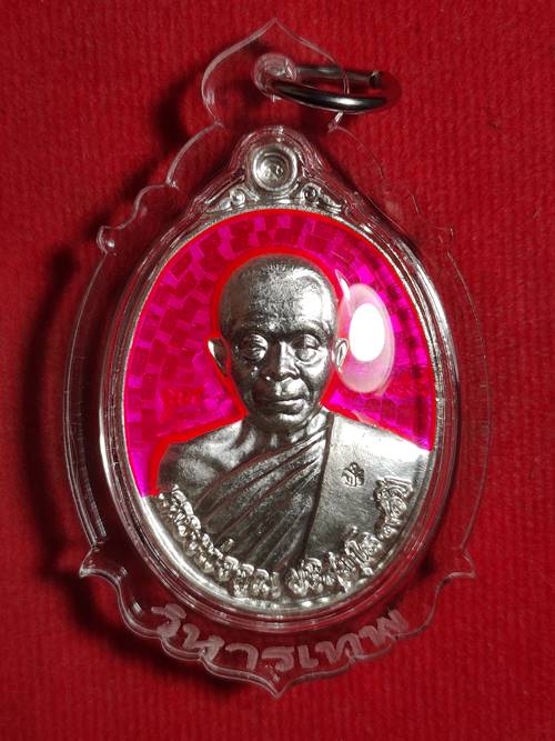 เหรียญหลวงพ่อคูณ ปริสุทโธ รุ่น ฉลองวิหารเทพ ออกวัดบ้านไร่ ปี 56 เนื้อ เงินลงยาสีชมพู หมายเลข 1784 เลี่ยมพร้อมใช้ เคาะเดียวแดง |