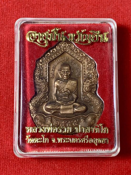 ((แดงที่100))เหรียญหลวงพ่อรวย รุ่น "อายุมั่น ขวัญยืน" ปี 2555 เนื้อทองแดงซาติน