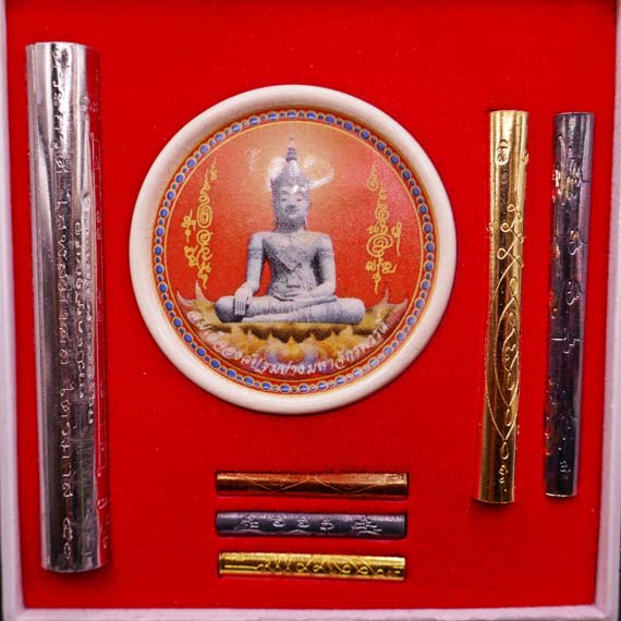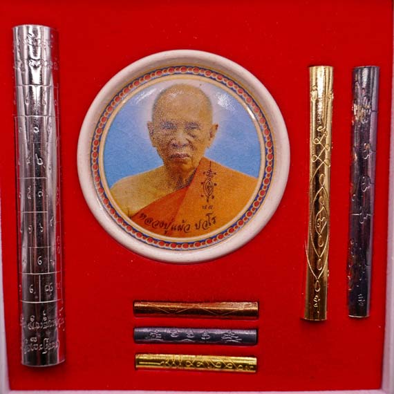 !!!!วัดใจ 9 บาท!!!! ตะกรุดชุดชุดใหญ่กรรมการ หลวงปู่แผ้ว ปวโร รุ่นไตรมาส 50 ตะกรุด 6 ดอก พร้อมลูกเซรามิค หน้าหลวงปู่แผ้ว หลังสมด็จองค์ปฐม วัดเจริญราษฎร์บำรุง (วัดหนองพงนก) |