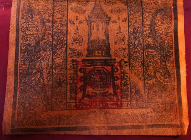 ผ้ายันต์ จีนไม่ทราบที่ ลวดลายสวย เนื้อผ้าดูเก่า ครับ (พระบ้าน ครับ)