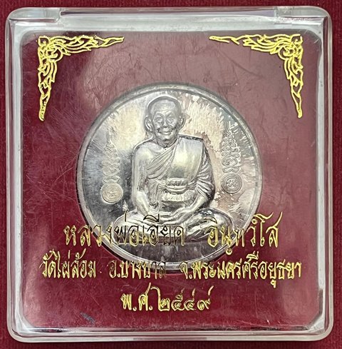 เหรียญบาตรน้ำมนต์ หลวงพ่อเอียด วัดไผ่ล้อม ปี 49 เนื้อเงิน ผิวเดิมๆ ขนาด 4 เซ็นติเมตร เคาะเดียวแดงครับ