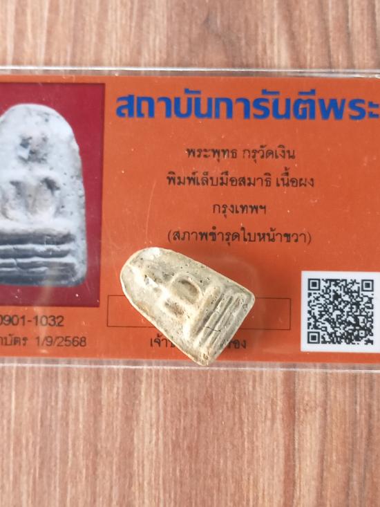 เคาะเดียวแดง+++พระพุทธ กรุวัดเงิน พิมพ์เล็บมือสมาธิ เนื้อผง กรุงเทพฯ มาพร้อมบัตรรับรองพระแท้ ระบุสภาพชำรุดใบหน้าขวา
