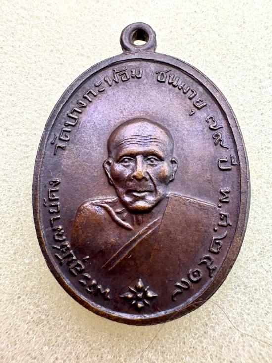 เหรียญหลวงพ่อคง วัดบางกะพ้อม ปี 2519 เนื้อทองแดง (หลวงพ่อเนื่อง ปลุกเสก)