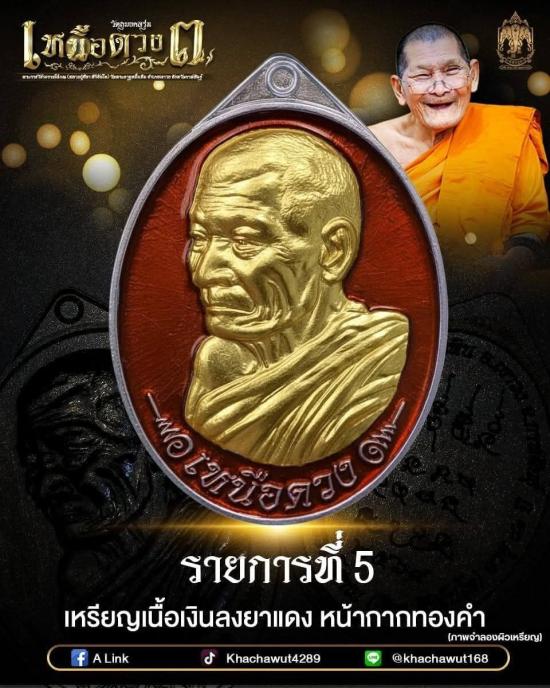 เหรียญเหนือดวง3 หลวงปู่มหาศิลา วัดพระธาตุหมื่นหิน เนื้อเงินลงยาสีแดงหน้ากากทองคำ ไม่แกะซีลลุ้นเลขสวย ปี2569 |