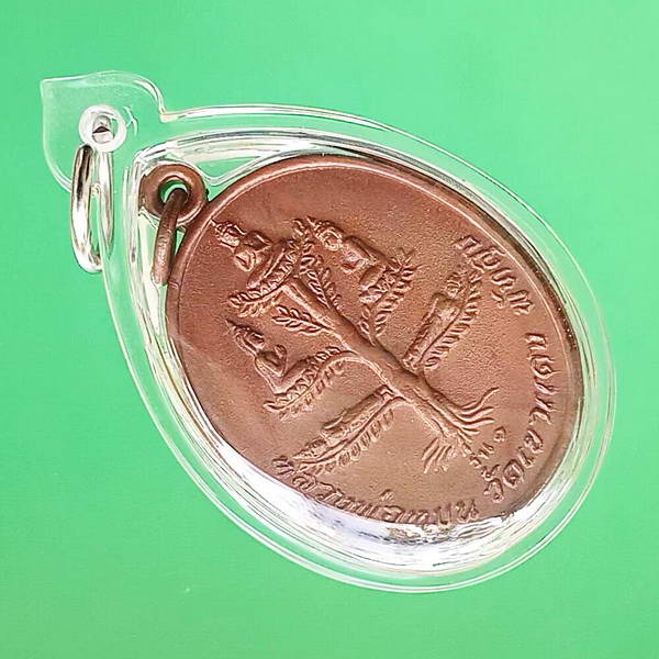 เหรียญต้นไม้ปางยมกปาฏิหาริย์ อ.หมุน วัดเขาแดงตะวันออก ปี 2516 มีผด ตัวหนังสือเอียง หลังยันต์เฉลวแปดทิศ นะ อุทธัง อะโธ ในเลี่ยม