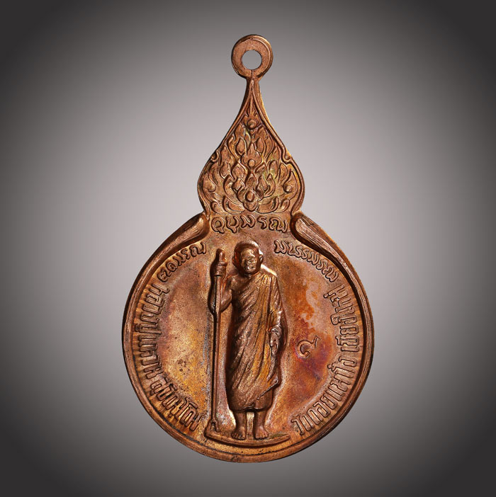 เหรียญหลวงปู่แหวน สุจิณฺโณ ยืนถือไม้เท้า หลังรวมใจ ปี2518 เนื้อทองแดง (สภาพทำความสะอาดผิวมาครับ) |