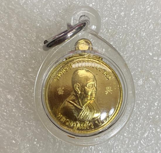 หลวงปู่แผ้ว ปวโร วัดรางหมัน เหรียญรุ่น โชคดี (เนื้อฝาบาตร) พร้อมเลี่ยม