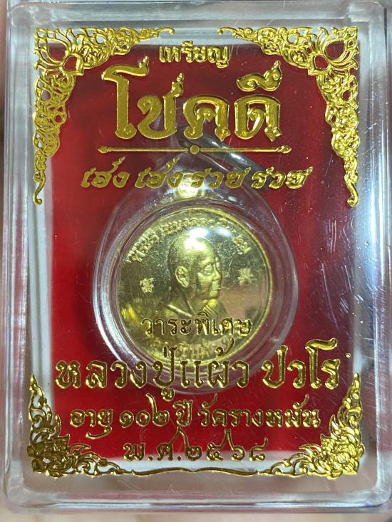 หลวงปู่แผ้ว ปวโร วัดรางหมัน เหรียญรุ่น โชคดี (เนื้อฝาบาตร) พร้อมเลี่ยม |
