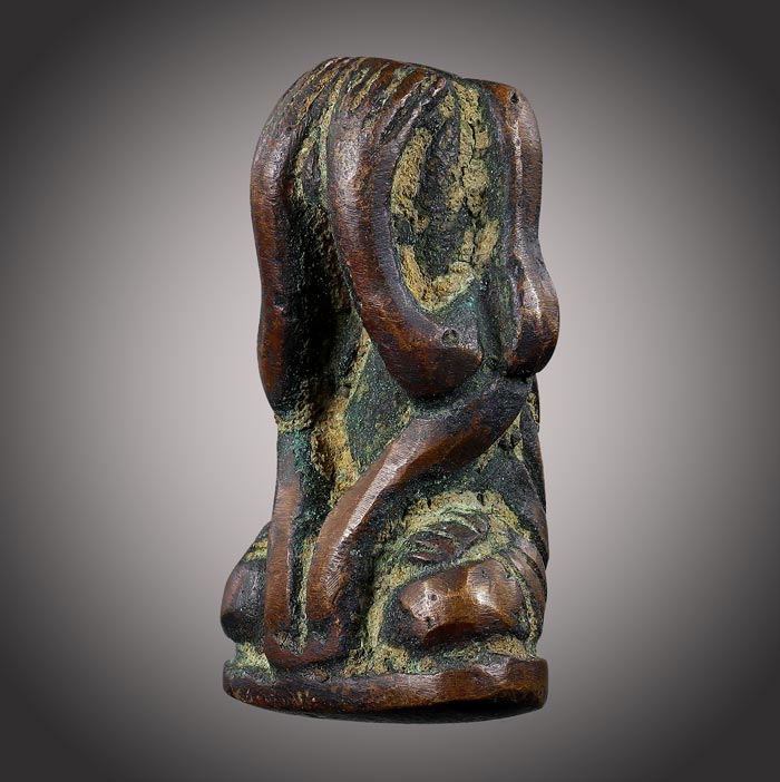 พระปิดตาหล่อโบราณ พิมพ์หูกระต่าย(ไม่ทราบที่)เนื้อโลหะผสม สภาพเก่ามีอายุ |