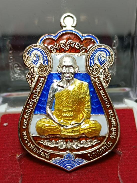 @@ เหรียญเสมา ดวงเศรษฐี๙๙ รวย รวย รวย หลวงพ่อพัฒน์ วัดห้วยด้วน (ขนาดเหรียญสูง 4.0 ซ.ม.) เนื้อเงิน ลงยาลายธงชาติ หมายเลข 289 พร้อมกล่องครับ