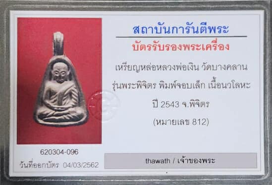 เหรียญหล่อจอบเล็ก หลวงพ่อเงิน รุ่นพระพิจิตร นวะโลหะ ปลุกพิธี ปี42-43 หลวงปู่หมุนร่วมปลุกเสก หมายเลข 812