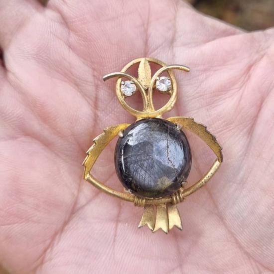 เข็มกลัดนกฮูกประดับ พลอยแซฟไฟร์สตาร์สีดำธรรมชาติ ขนาดเม็ด 14.2 มม. |