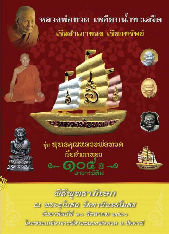 รายละเอียด เคาะเดียวแดง เรือสำเภาทอง เรียกทรัยพ์ หลวงพ่อทวด รุ่น 105 ปี อาจารย์ทิม แบบจิวเวอร์รี่งานสวย เนื้อบรอนท์นอกชุบทองขัดเงา ขนาด 1.7x1.9 ซม สวยๆไม่ผ่านการใช้ครับ