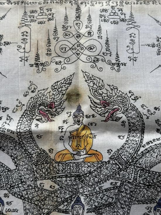 ผ้ายันต์นาคเกี้ยวไม่ทราบที่ ผ้าเก่าสีเก่า