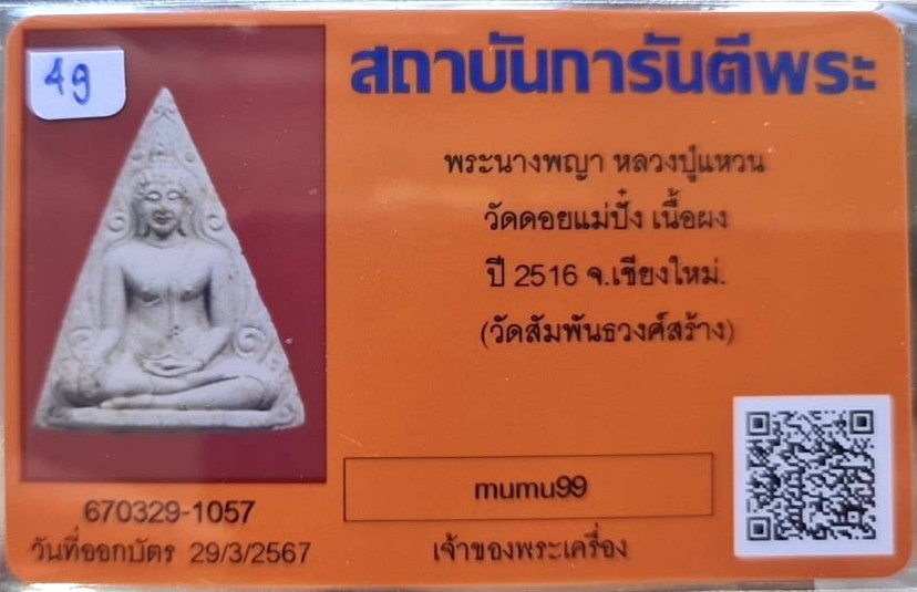 @## พระนางพญา.. ลป.แหวน วัดดอยแม่ปั๋ง จ.เชียงใหม่ (พิธีปลุกเสกใหญ่ใหญ่ วัดสัมพันธวงศ์ กทม.จัดสร้าง ) ปี2516 เนื้อผง พร้อมบัตรรับรอง สภาพสวยมาก รับประกันความแท้ตลอดชีพ พิธีปลุกเสกในวาระแรก ปี 2516 -วัต |