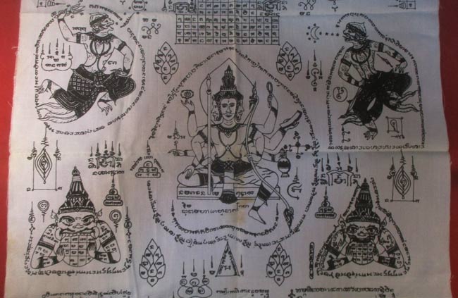 ผ้ายันต์ หลวงพ่อบุญสิงห์ ธีรภทฺโโ วัดกลางดาวคะนอง ลวดลายสวย ครับ (พระบ้าน ครับ)