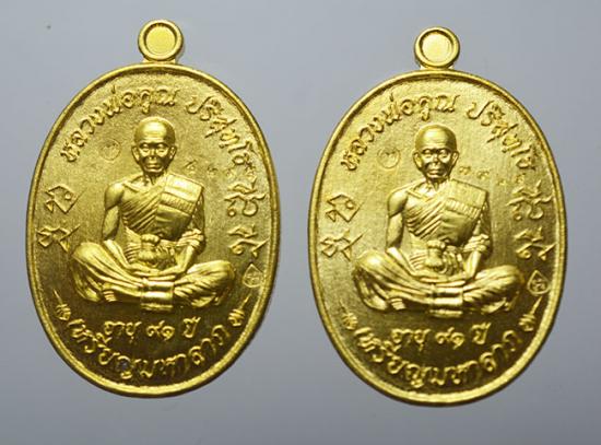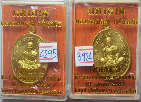 เหรียญหลวงพ่อคูณ วัดบ้านไร่ รุ่น มหาลาภ เททอง วาระ 3 ครั้งสุดท้าย ปี 57 เนื้อทองระฆัง 2 เหรียญ เลขตามภาพ