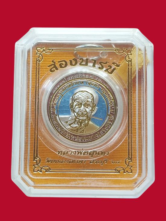 เหรียญเนื้อเงิน หลวงพ่อสุนทร เลี่ยมพร้อมใช้