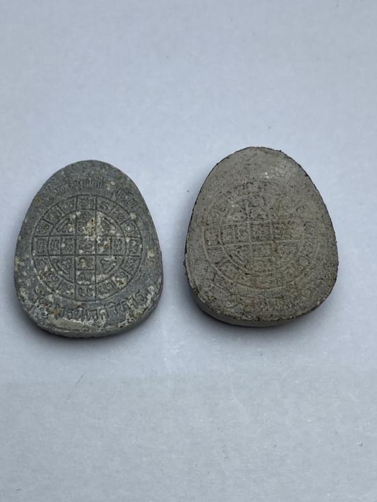พระปิดตายันต์ดวงเล็ก ปี2523 สมเด็จพระญาณสังวร (เจริญ) วัดบวรนิเวศ(เนื้อผงใบลานแช่น้ำมนต์บาง)พิมพ์หนาพิเศษ 1 หินครก 1 ยกคู่เคาะเดียวแดง |
