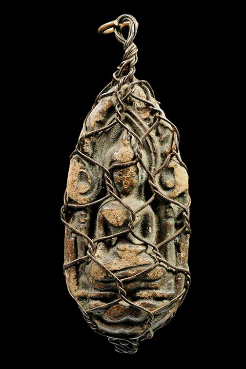 พระขุนแผนไข่ผ่าซีก หลังจีวร หลวงพ่อกวย วัดโฆษิตาราม จ.ชัยนาท ถักลวดเก่า |