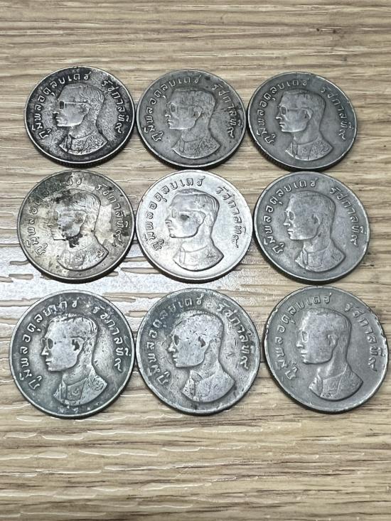 +++ เหรียญ 1 บาท มหาบพิธ เหรียญครุฑปี 17 ผ่านใช้ จำนวน 9 เหรียญ +++2 |